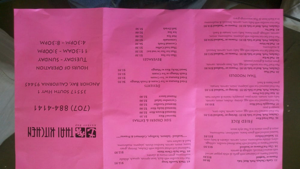 Anchor Bay Thai Kitchen Menu